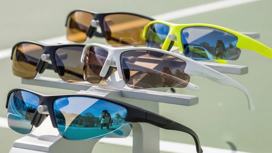 テニス用サングラスには偏光・ミラー・ハイコントラストなどさまざまなレンズ種類があり、フィット感や価格帯もモデルごとに大きく異なります。